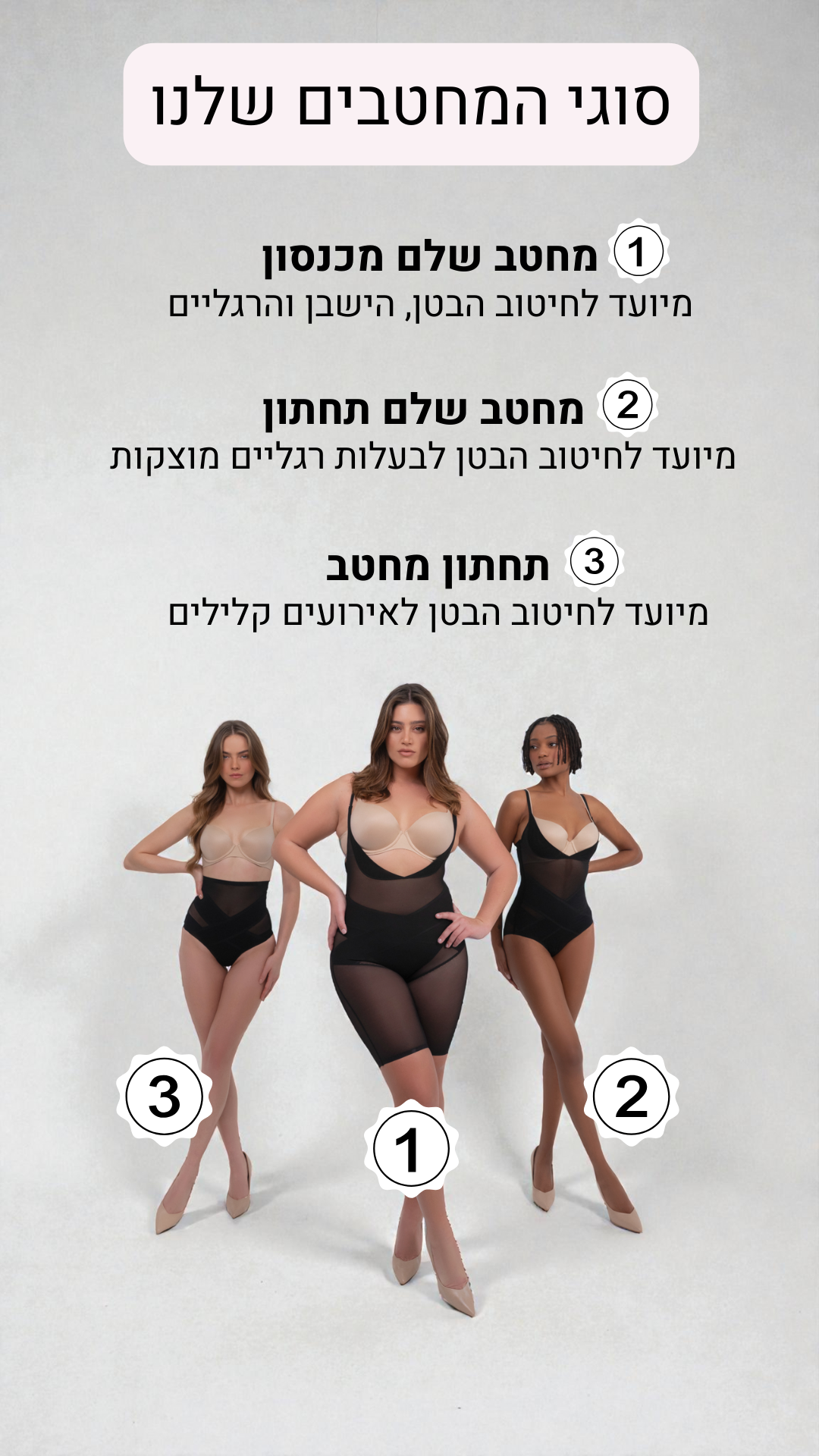 למעבר לאתר המחטבים - לחצי כאןקולקציית מחטבי גוף מבית דרור קונטנטו מציעה מגוון רחב של גזרות מחטבי גוף, המיועדות להתאים למבני גוף שונים ומגוונים. אין אישה שלא זקוקה למחטב מושלם כזה בארון שלה, אשר יכול להדגיש את הקווים היפים של הגוף ולהעניק תחושת ביטחון